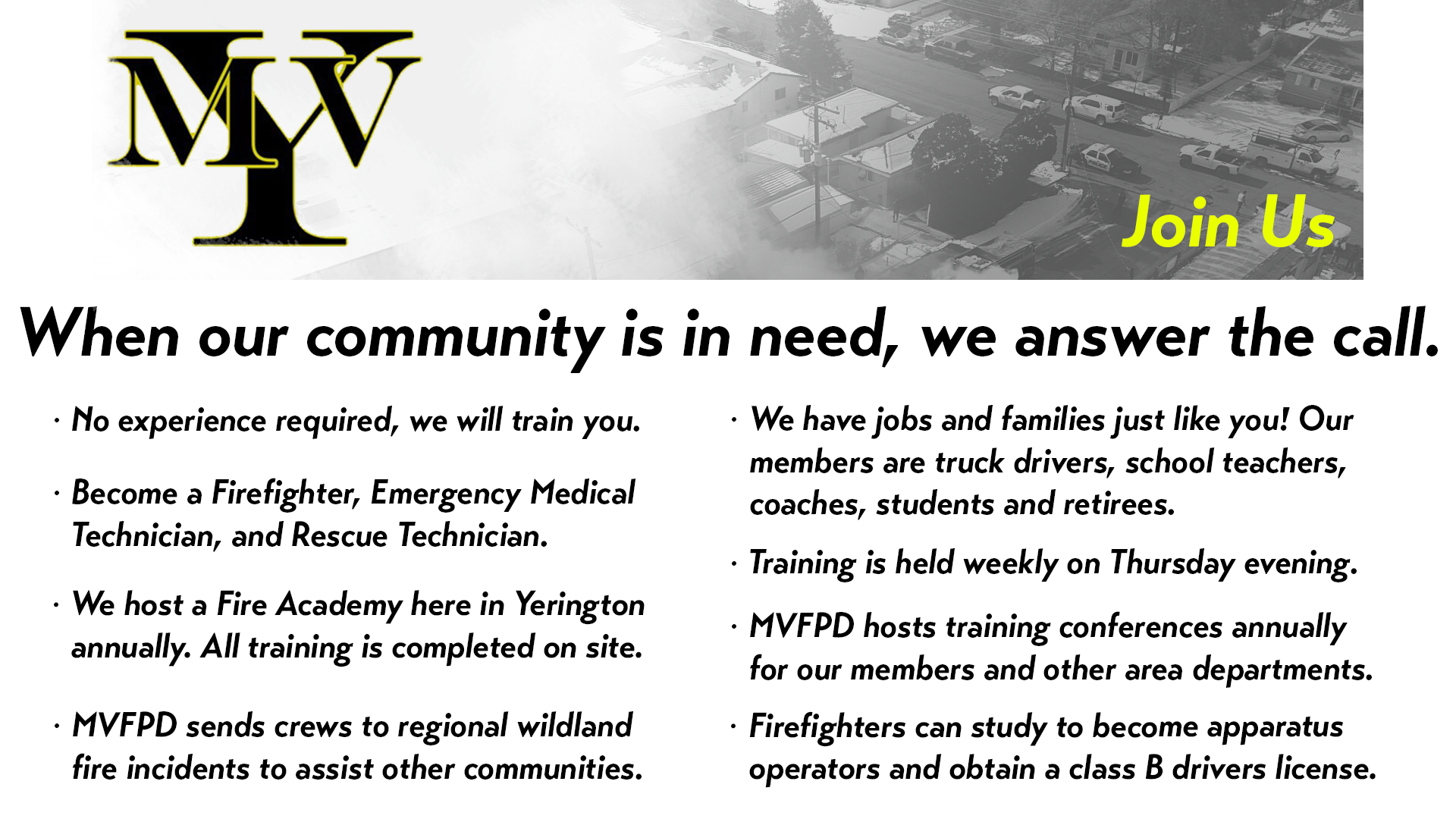 Stop by the station and talk to our members about what it's really like to volunteer.